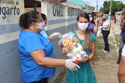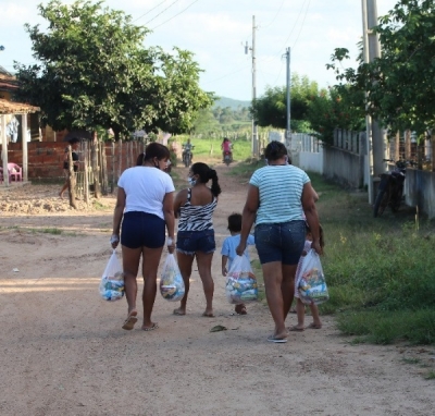 A ação teve início no Povoado Olhos D’água, onde mais de 150 famílias receberam cestas de alimentos. A concentração foi na Creche Sossego da Mamãe. O benefício também chegará até os moradores do Assentamento Palestina.