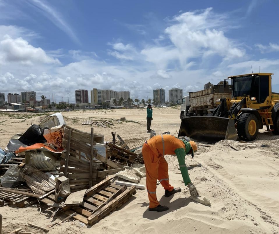 Mesmo com o prazo concedido pela Justiça Federal vencido só nas últimas horas desta sexta-feira (9), os comerciantes da faixa de areia da praia da Cinelândia, na Orla da Atalaia, já haviam retirado, no decorrer da semana, de forma espontânea, as estruturas fixas dos bares e barracas. Na manhã deste sábado, 10, após monitoramento realizado na área, a Empresa Municipal de Serviços Urbanos (Emsurb) identificou materiais deixados e realizou o recolhimento.