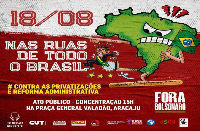 Nos últimos dias, Bolsonaro e seus apoiadores no Congresso Nacional aceleraram o projeto de destruição de direitos dos trabalhadores, desmonte do serviço público e entrega do patrimônio nacional e das maiores empresas públicas para a privatização. A população massacrada – pelo aumento dos preços dos alimentos, combustíveis, do desemprego e da fome vai ocupar as ruas de todo o País na próxima quarta-feira, dia 18 de agosto, mantendo os mesmos cuidados do uso de máscara, distanciamento e uso de álcool para impedir a contaminação por Covid-19.