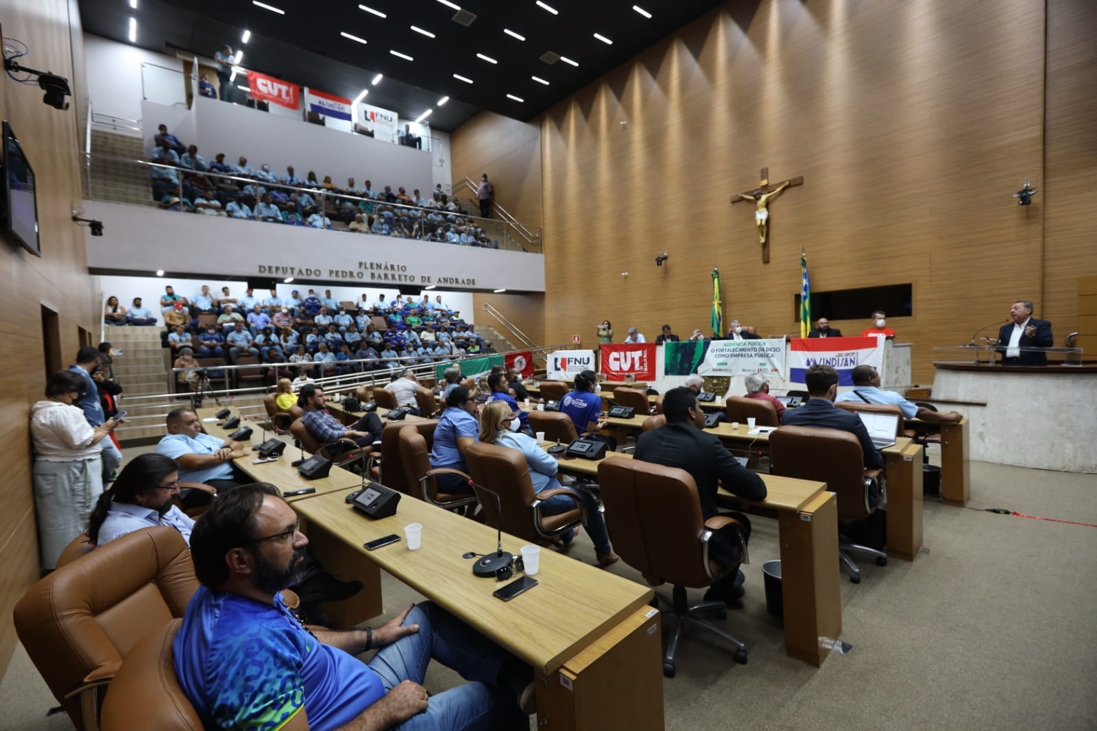Foi realizada, nesta sexta-feira, 2, a Audiência Pública para debater o tema “O fortalecimento da DESO como empresa pública”. O evento foi realizado no plenário da Assembleia Legislativa de Sergipe e contou com a presença de frentes sindicais e funcionários públicos da empresa.