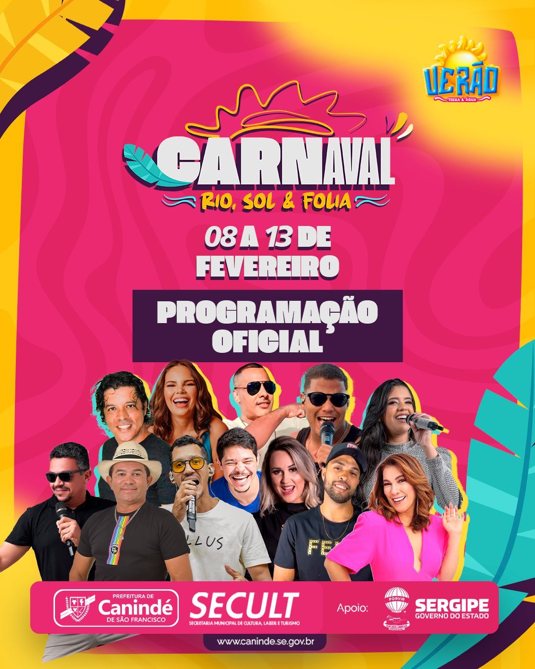 O Carnaval 2024 acontecerá de 08 a 13 de fevereiro na CidadeOásis do Sertão Sergipano, e contará com atrações locais e nacionais.
