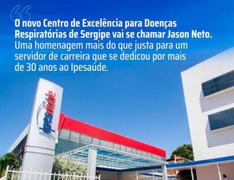 O Centro de Excelência para Doenças Respiratórias – que será construído na Unidade de Internamento Provisório do Instituto de Promoção e de Assistência à Saúde de Servidores do Estado de Sergipe – vai se chamar “Jason Gois da Silva Neto”.