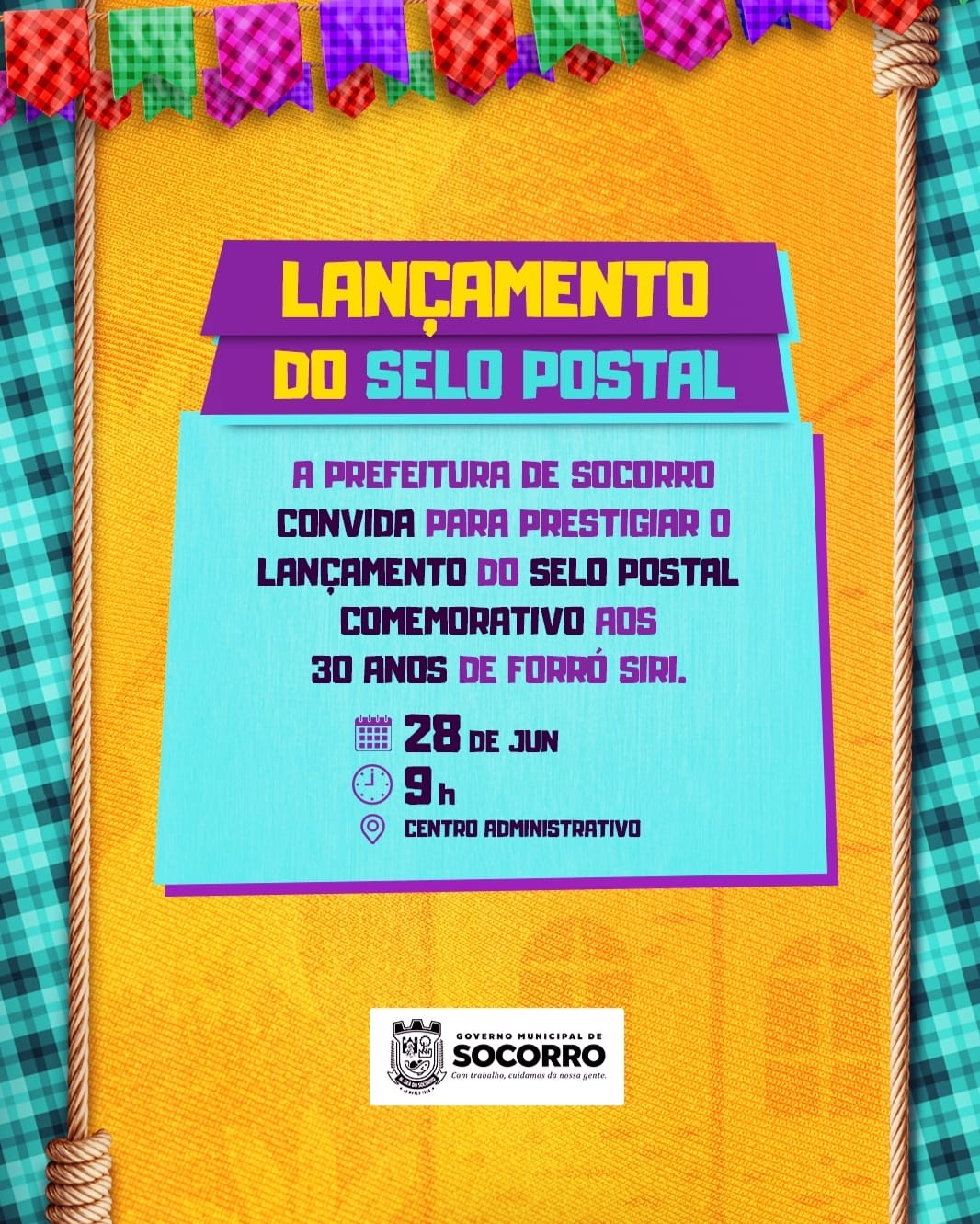 Em comemoração aos 30 anos de existência do Forró Siri, os Correios de Sergipe, em parceria com a Prefeitura de Nossa Senhora do Socorro, irá lançar um selo personalizado, em reconhecimento a esta que é a maior manifestação cultural do município e uma das mais importantes do Estado de Sergipe. A homenagem à festa ocorrerá na próxima quarta-feira, 28, às 9h, no Centro Administrativo José do Prado Franco, sede do município.