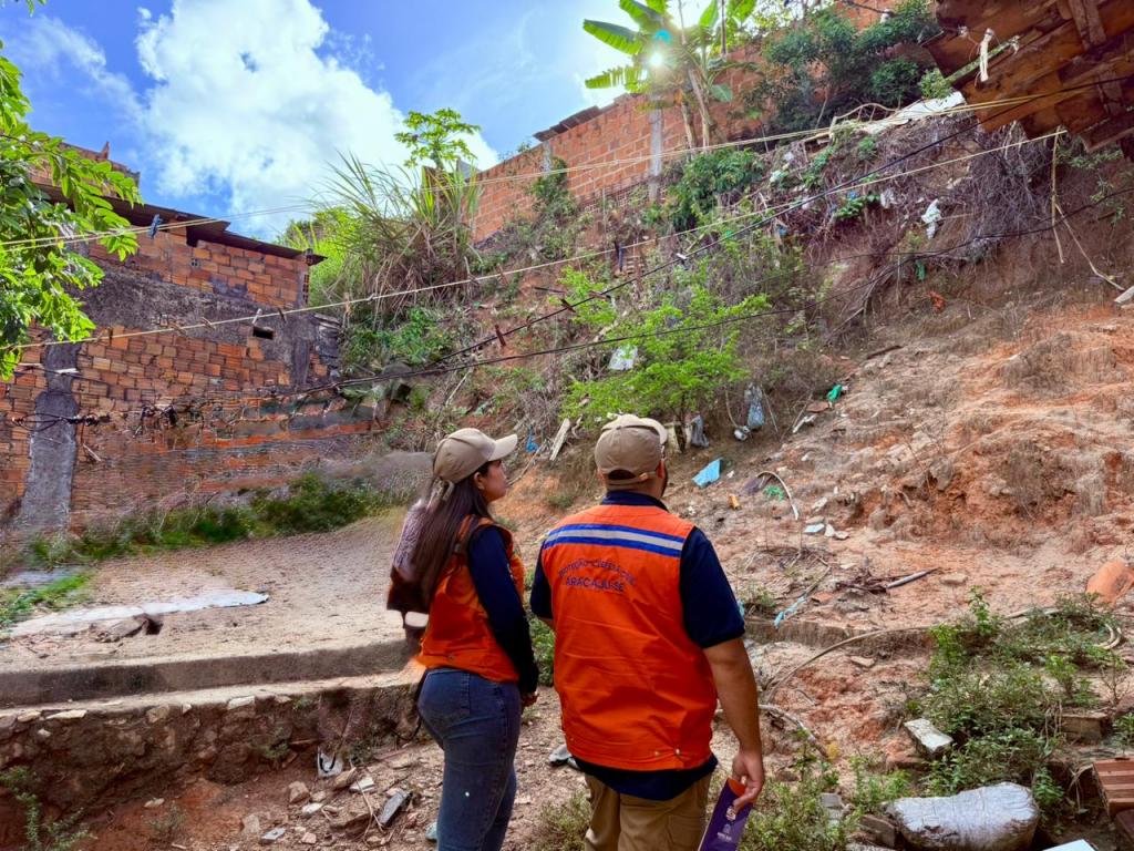 Em uma outra área, no mesmo bairro, o órgão municipal identificou uma área que vai receber uma lona para reduzir a infiltração da água no solo e assim evitar a erosão na encosta. “Essas medidas visam proteger a nossa população. Todos os riscos são avaliados e, em alguns casos, os imóveis são interditados e os familiares precisam deixar o imóvel. Para nós, o mais importante é o cuidado da com as vidas”, ressaltou Priscila Dias.