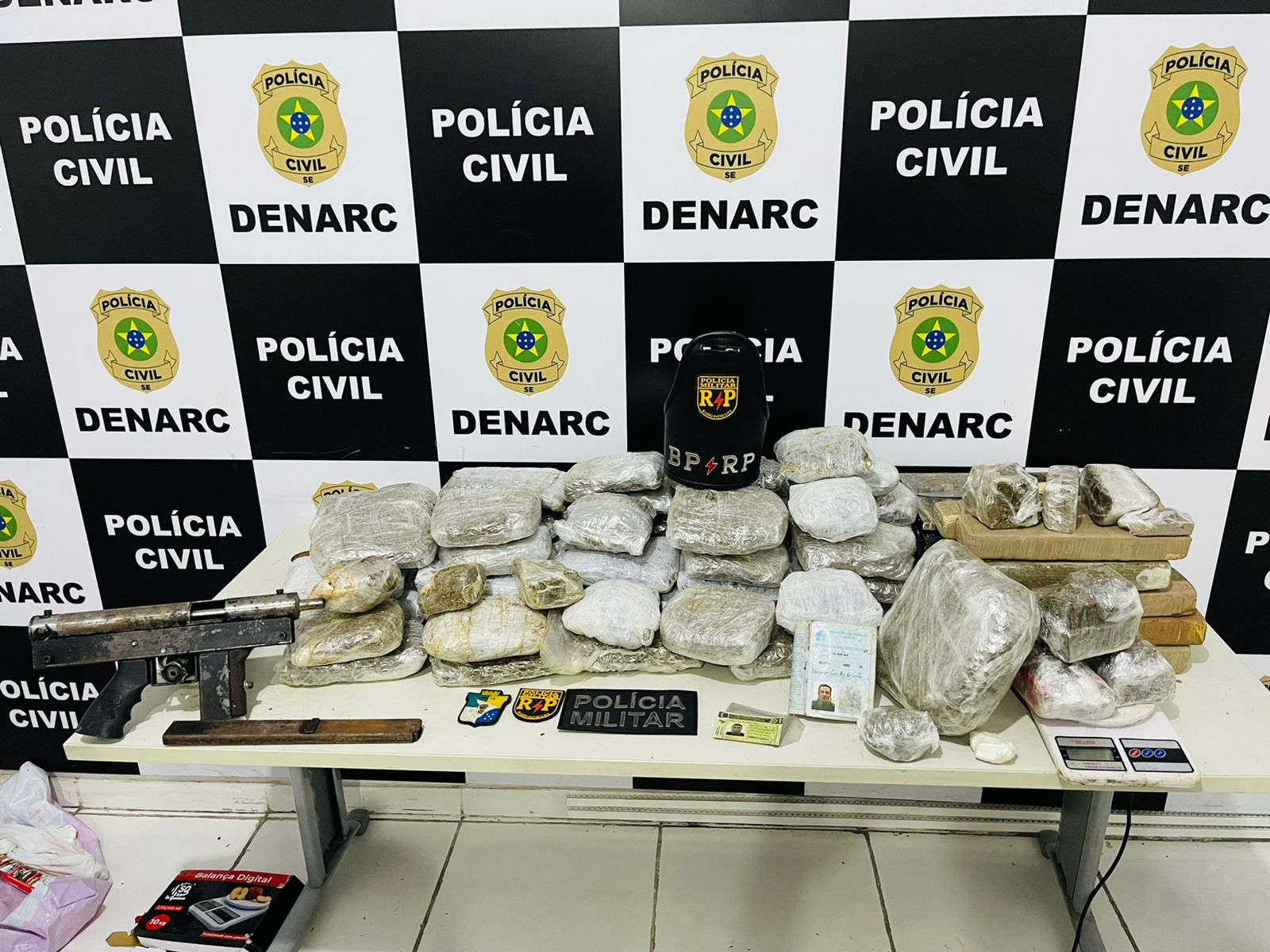 Nesta quinta-feira (28), o Departamento de Narcóticos da Polícia Civil de Sergipe (Denarc), com o auxílio do Batalhão de Polícia de Radiopatrulha (BPRp) da Polícia Militar, apreendeu quase 30 quilos de maconha, 350 gramas de cocaína e uma metralhadora em operação que ocorreu em três bairros da Grande Aracaju.