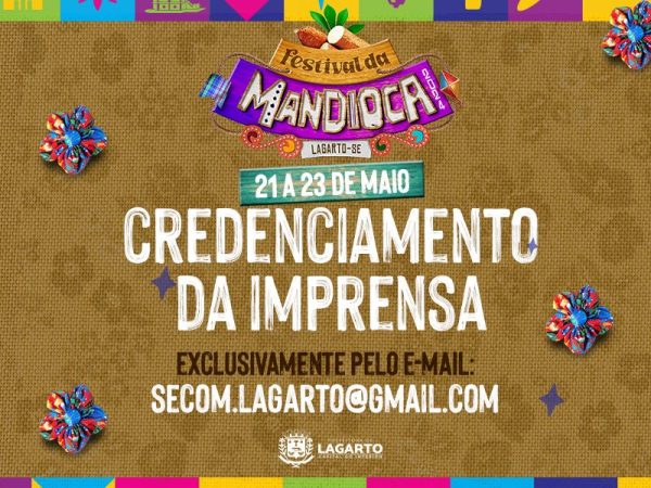 A Prefeitura de Lagarto, através da Secretaria de Comunicação Social (Secom), realiza entre os dias  21 e 23 de maio, o cadastro de veículos e profissionais de comunicação que pretendem realizar a cobertura do “Festival da Mandioca 2024”.