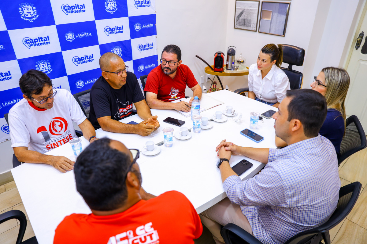 A assinatura da atualização do piso do magistério, dos retroativos e da retomada da carreira do magistério ocorreu nesta segunda-feira, 19, no Gabinete Executivo, com a presença da prefeita Hilda, dos secretários Rafaela Ribeiro (Governo) e Magson Almeida (Educação), e de dirigentes do SINTESE.