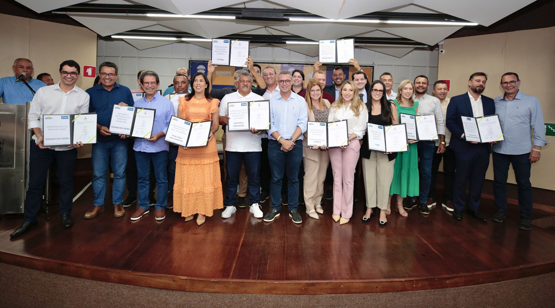 Prefeitos e representantes de 11 municípios de seis territórios sergipanos celebraram na tarde desta terça-feira, 17, a assinatura de ordens de serviços para a execução das 12 obras do Programa Acelera Sergipe. Realizado pelo Governo de Sergipe, por meio de uma ação conjunta entre as secretarias de Estado do Desenvolvimento Urbano e Infraestrutura (Sedurbi), da Casa Civil (SECC), do Turismo (Setur) e da Agência Sergipe de Desenvolve-SE – por meio do Programa Projetar-SE – e prefeituras municipais, o programa objetiva promover o crescimento econômico de Sergipe por meio da execução de diversas intervenções de infraestrutura.