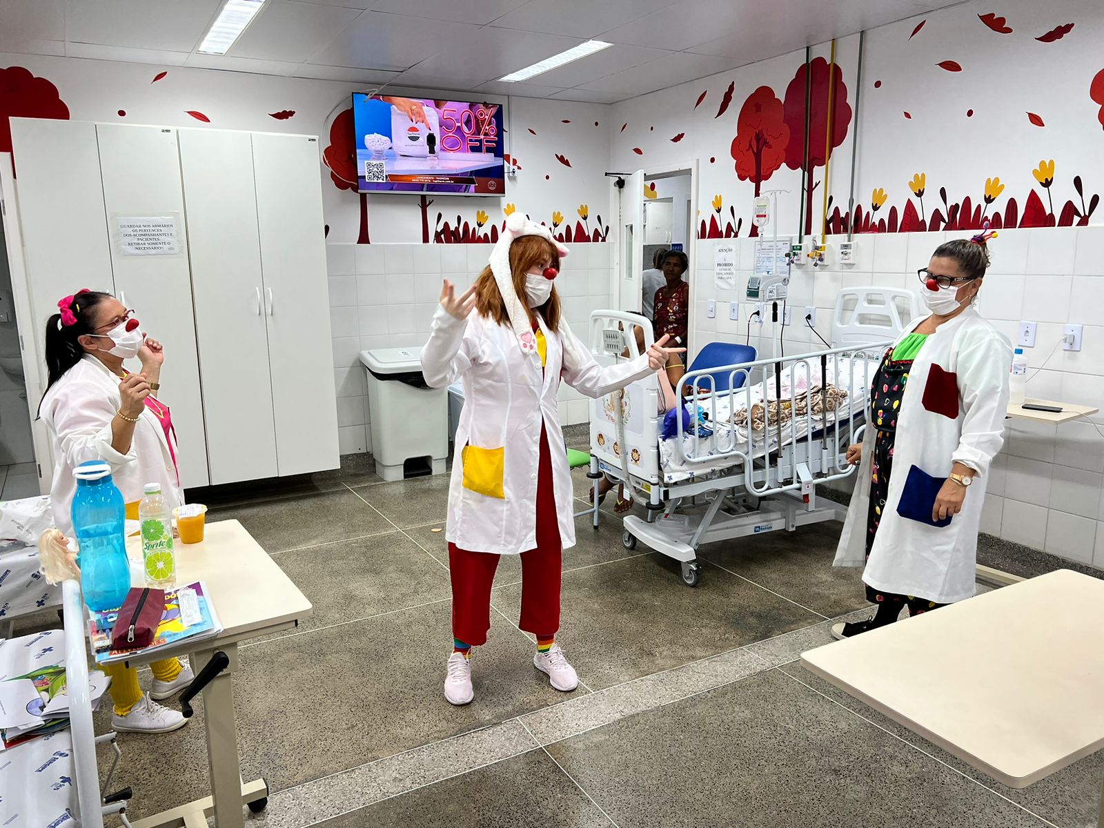 E para deixar o ambiente hospitalar mais agradável e a estadia no hospital mais leve, a unidade desenvolve atividades periódicas que promovem o bem-estar e contribuem para a recuperação dos pacientes. Entre as ações estão os ‘Palhaços de Propósito’ que, uma vez por semana, visitam o HC com sua trupe levando muita diversão e alegria para as crianças. E também a cinoterapia, uma técnica de intervenção terapêutica, realizada em parceria com o Corpo de Bombeiros Militar de Sergipe (CBM/SE), que utiliza cães para promover o estímulo das crianças internadas no hospital.