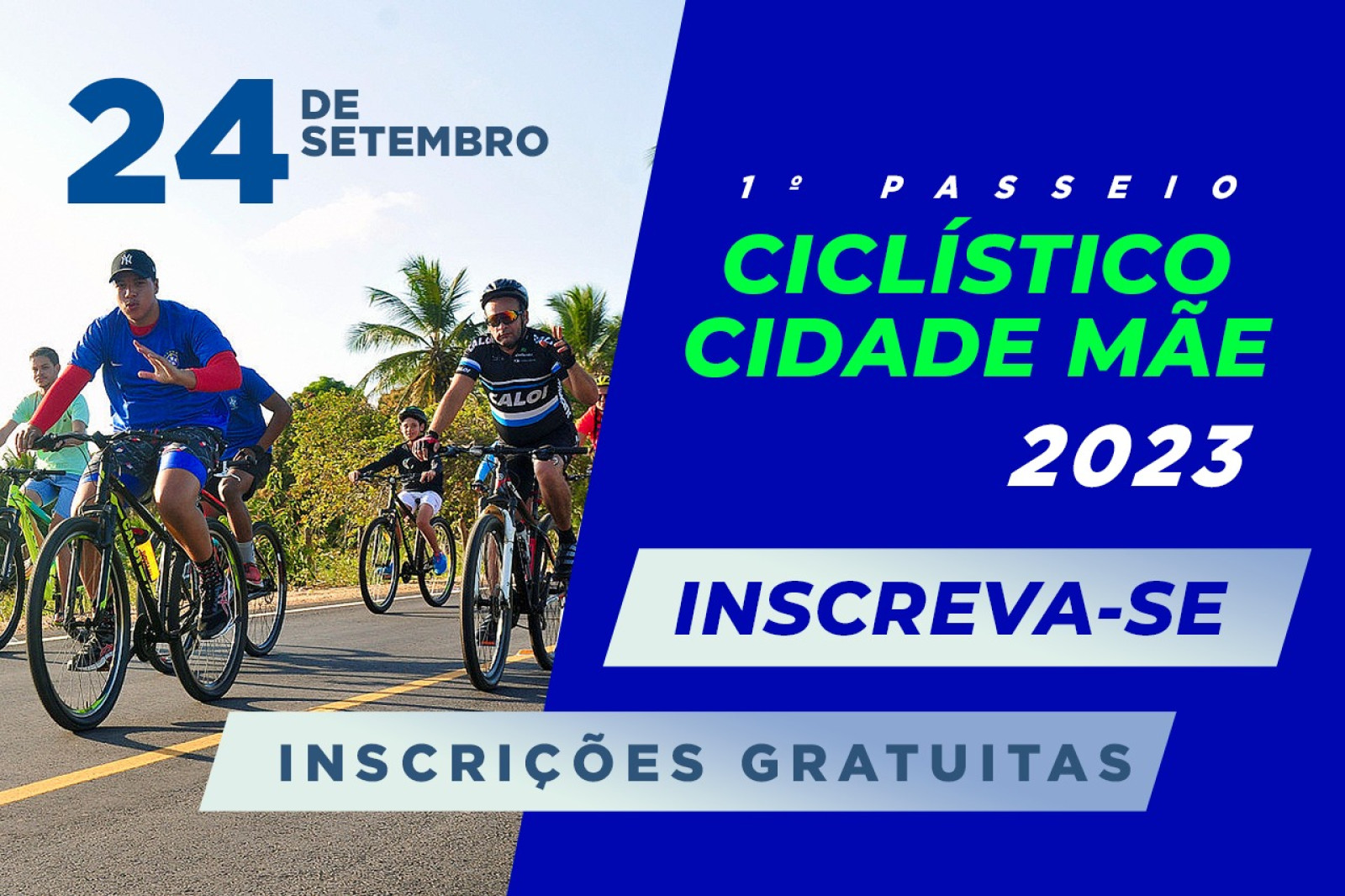 A Superintendência Municipal de Transporte e Trânsito de São Cristóvão (SMTT) está com inscrições abertas para o Passeio Ciclístico Cidade Mãe 2023. A atividade vai ocorrer no dia 24 de setembro a partir das 07:00 e o percurso previsto tem início no Cristo Redentor e chegada no Parque Natural Aloísio de Campos, a Bica dos Pintos.