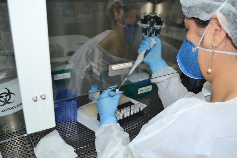 O Lacen realiza testes em amostras para diagnóstico da Covid-19, apenas pela técnica RT-PCR em tempo real, considerado padrão ouro para a detecção do novo coronavírus (Sars-Cov-2-). Na unidade, o material (secreção do nariz e garganta) coletado no paciente com suspeita de contaminação do vírus, passa por diferentes estágios de preparação e extração do material genético até chegar à etapa final do processo, que é a amplificação do RNA do vírus e, a liberação do laudo com o resultado.