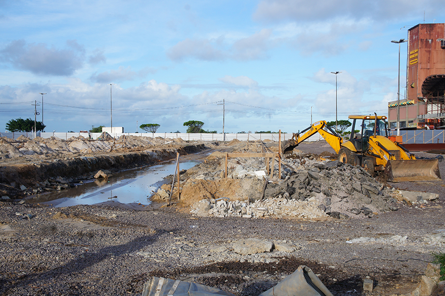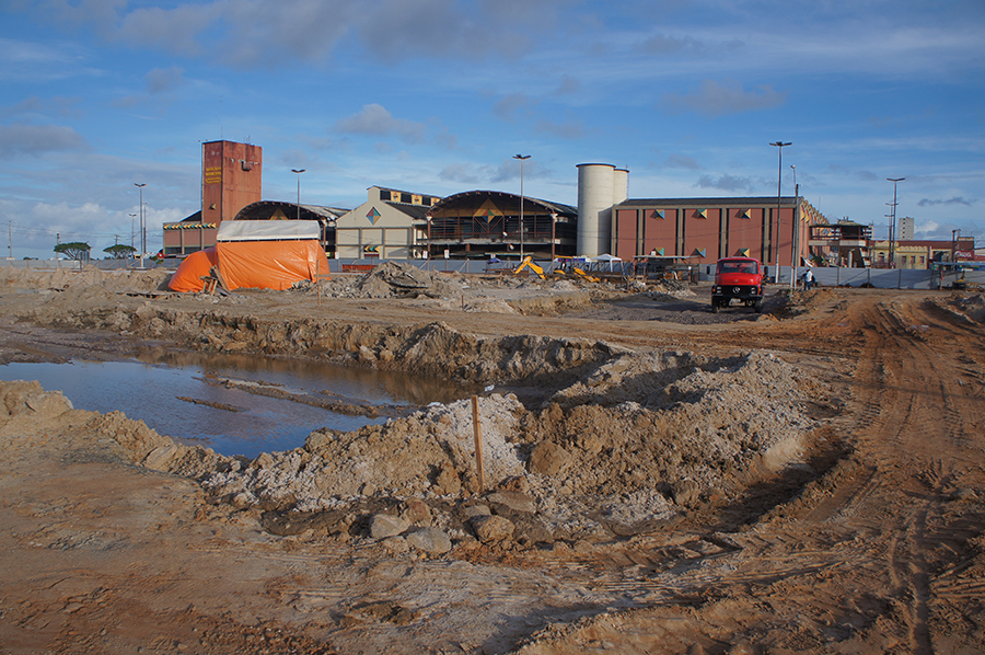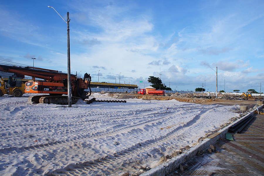Atualmente, no canteiro da obra, cerca de 30 operários executam a fase das fundações da parte física e terraplenagem na outra parte do terreno, a qual complementará o projeto arquitetônico.