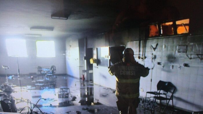 O incêndio teve início na sala de prescrição médica da ala covid. No momento, havia 41 pacientes na unidade, sendo 24 internados na ala covid, 14 na ala de internação geral e três em observação.
