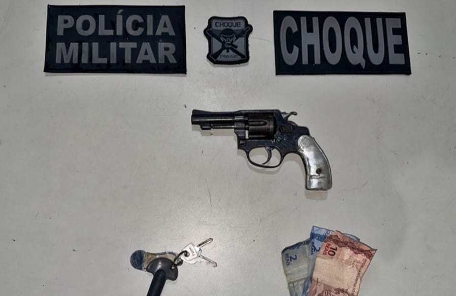 A equipe realizava policiamento na região, momento em que três homens empreenderam fuga para um matagal, ao notar a presença dos militares.  Um deles foi encontrado após buscas no local. Com ele, foi apreendido um revólver calibre .32.