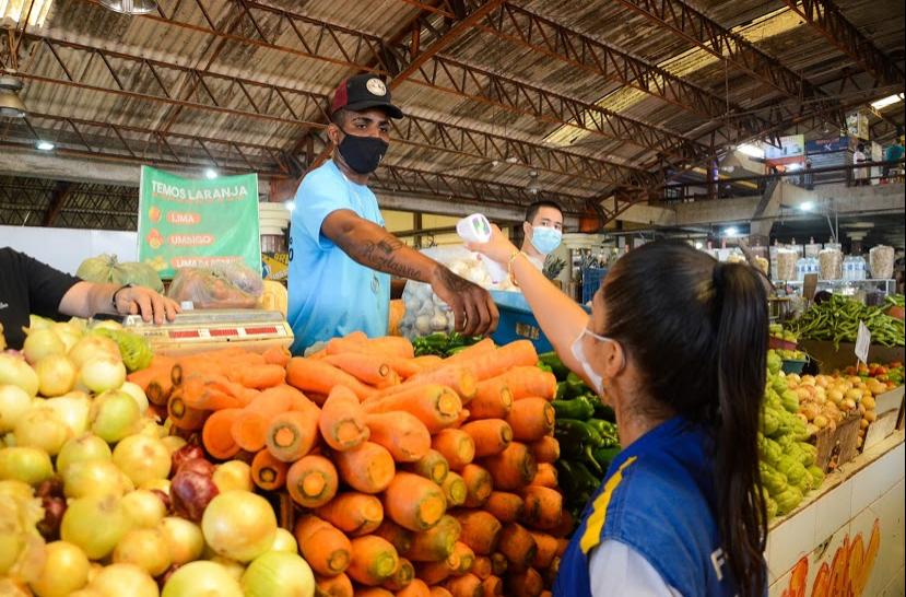 Para garantir a manutenção dos cuidados relativos à disseminação do novo coronavírus na capital sergipana, a Prefeitura de Aracaju realizou, nesta terça-feira, 25, mais uma ação de monitoramento com aferição da temperatura corporal dos permissionários do mercado Maria Vírgínia Leite Franco, na região central da cidade.