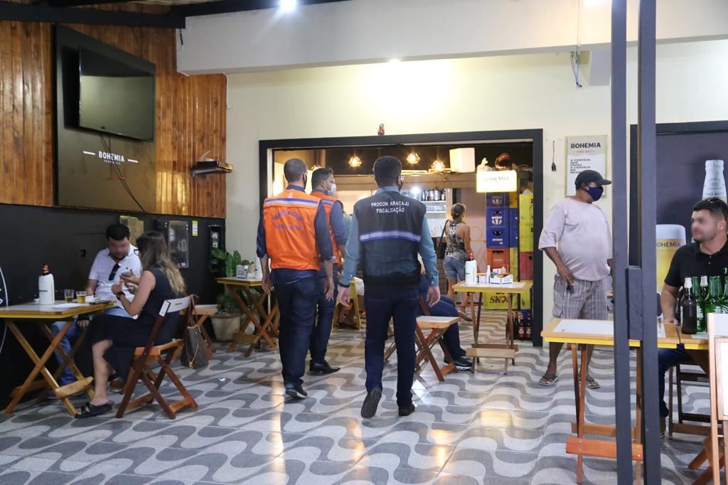 Com o objetivo de fazer cumprir as novas medidas restritivas para conter a propagação do novo coronavírus, previstas no decreto municipal n° 6.395/2021, a Prefeitura de Aracaju realizou na noite desta sexta-feira, 5, uma ação integrada de fiscalização em bares e restaurantes nos bairros 13 de Julho, Grageru, Luzia, Farolândia, Jardins e Inácio Barbosa.