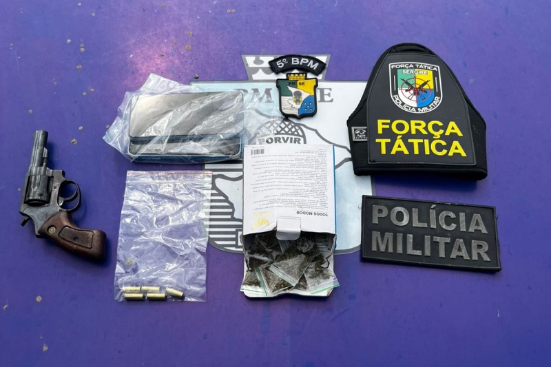 Na manhã desta segunda-feira, 29, a Força Tática do 5º Batalhão de Polícia Militar (5º BPM) apreendeu uma arma de fogo e porções de maconha no Conjunto João Alves, em Nossa Senhora do Socorro. A ação teve início quando os policiais realizavam patrulhamento ostensivo numa localidade conhecida pela alta incidência de atividades criminosas.