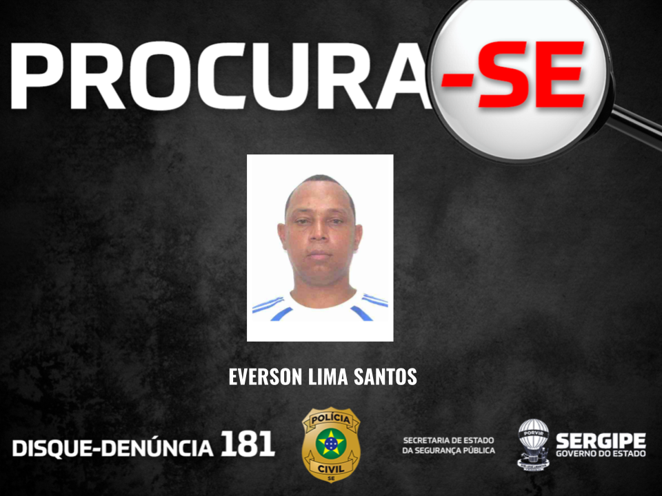 O Departamento de Homicídios e Proteção à Pessoa (DHPP) divulgou a imagem de Everson Lima Santos, de 38 anos, investigado pelo feminicídio da companheira, Thais Cristina de Freitas, de 36 anos. O crime ocorreu no dia 14 de abril de 2026, no bairro São Conrado, em Aracaju.
