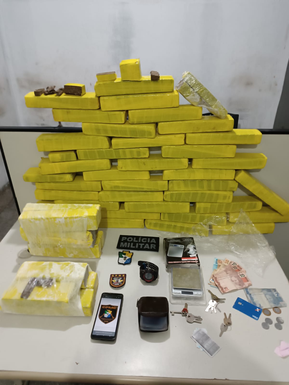 O homem que conduzia o veículo foi preso em flagrante por tráfico de drogas e foi conduzido à delegacia, onde foram adotadas as demais medidas legais cabíveis ao caso.