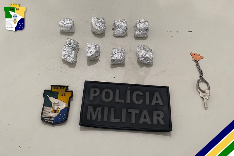 Durante patrulhamento, a equipe percebeu que um casal apresentava comportamento suspeito. Após realizar abordagem, com os suspeitos foram apreendidas oito unidades de substância semelhante à maconha.