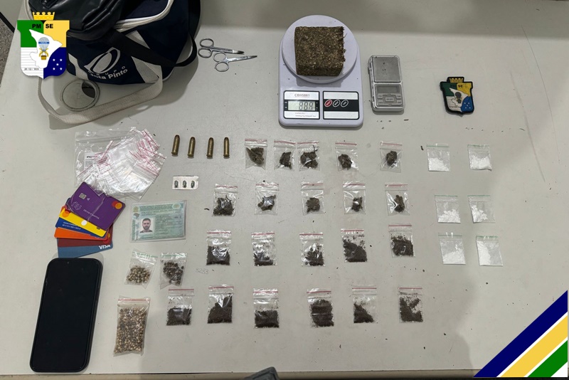 Na tarde dessa quinta-feira, 4, o Batalhão de Polícia de Choque (BPChoque) prendeu um homem por tráfico de drogas e apreendeu substâncias ilícitas, no bairro Santa Maria, Zona Sul de Aracaju.
