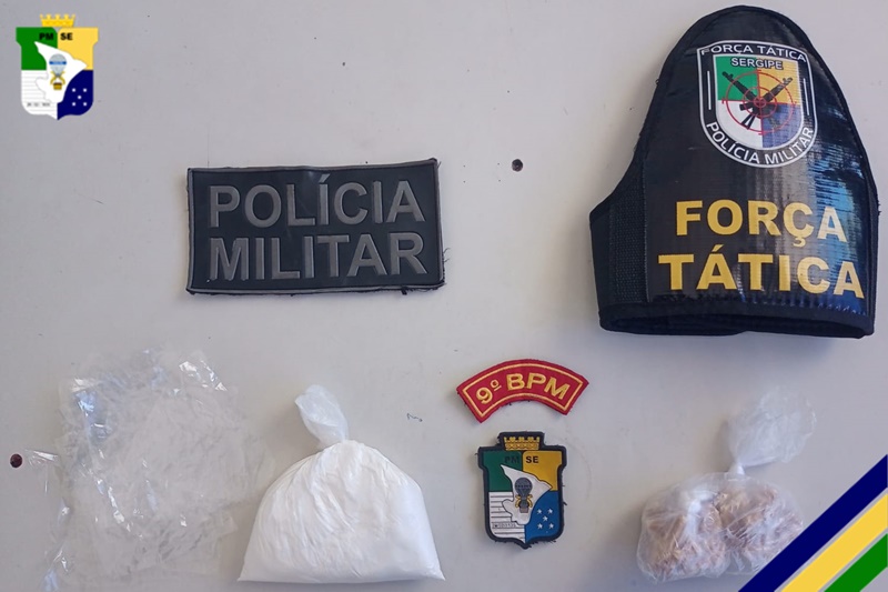 Nesta quinta-feira (9), militares do 9º Batalhão de Polícia Militar prenderam um homem traficando drogas no Povoado Aguada, em Carmópolis.