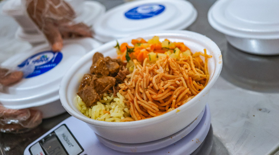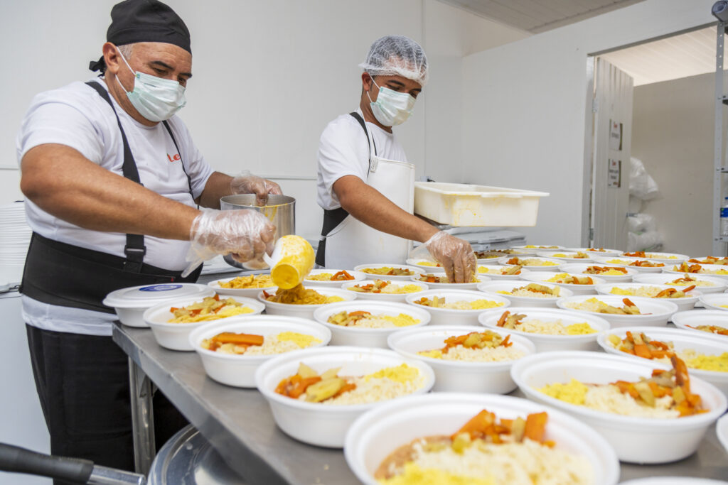 Cada quentinha tem, em média, 630 gramas, e o kit contém também suco e fruta. Não é permitido o consumo de refeição nas dependências do estabelecimento. O horário de distribuição das refeições vai de 11h às 13h, de acordo com a disponibilidade.