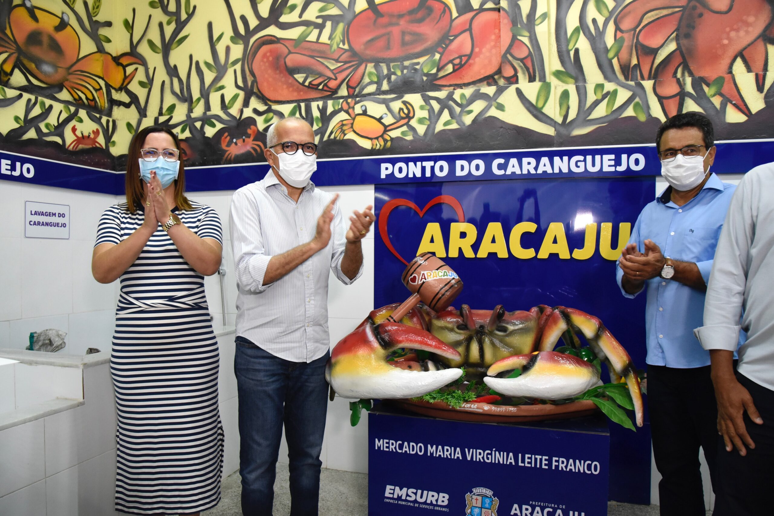 O novo Ponto do Caranguejo faz parte de conjunto de ações idealizado para revitalização do Mercado Municipal Virgínia Franco e que começou a ser colocado em prática na gestão anterior do prefeito Edvaldo Nogueira. Com um investimento de R$ 90 mil, em recursos da própria Prefeitura, o espaço recebeu nova pintura, bancadas em alvenaria com lavatórios e revestimento. O sistema de drenagem também passou por modificações para evitar umidade do piso e, para tornar o local ainda mais atrativo, além da instalação de uma escultura no formato de caranguejo, foi realizada uma intervenção em grafite nas paredes, com desenhos que remetem ao crustáceo, feita pelo artista Ícaro Couto Gomes, popularmente conhecido como “Fosco”.