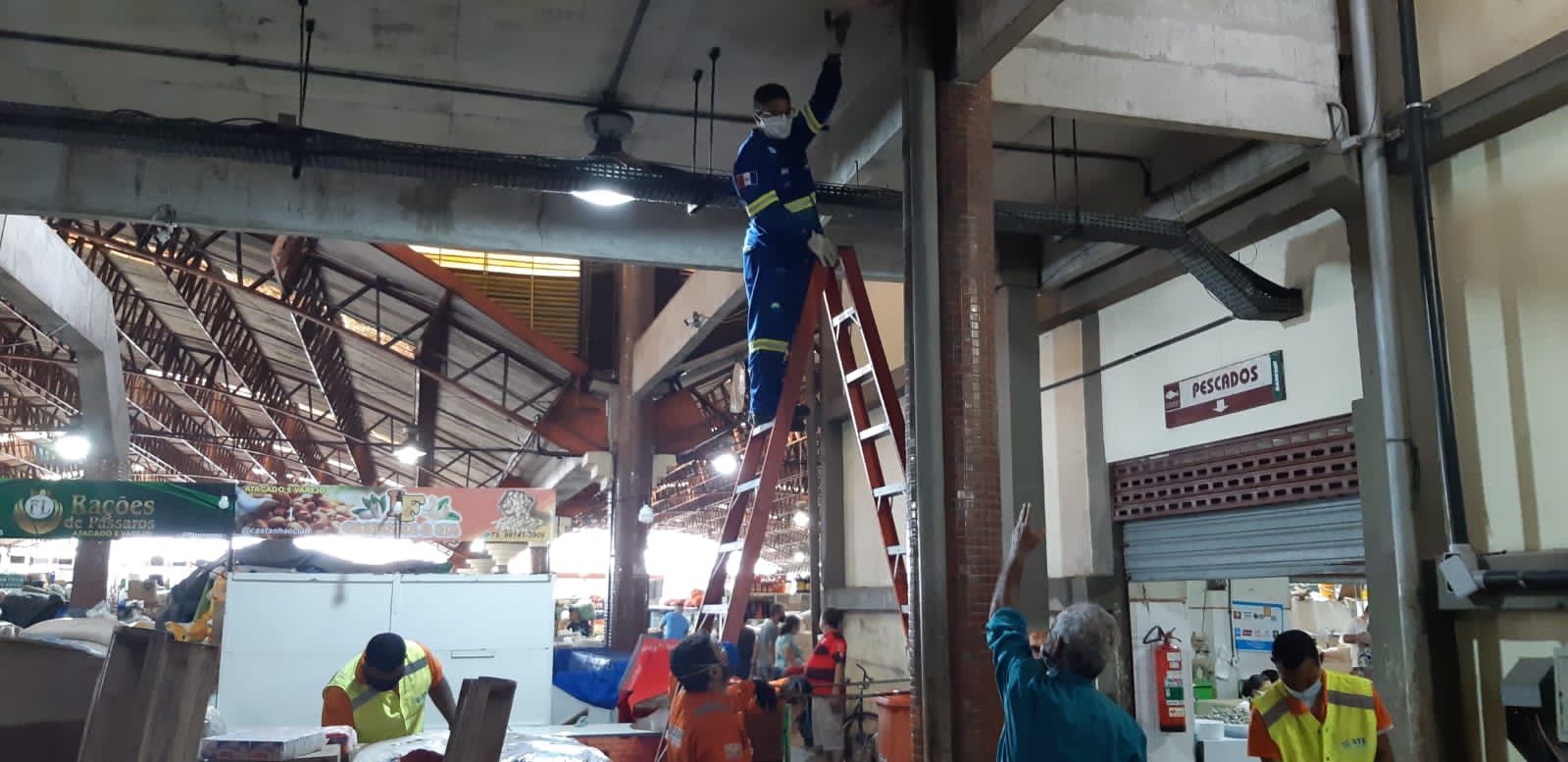 Também nesta terça, no Maria Virgínia, a Emsurb iniciou o reforço da rede elétrica no setor de eletrônicos e importados. A atividade visa reduzir a incidência de oscilações no fornecimento de energia para os boxes. “Será realizada a troca de cabos, verificação dos quadros elétricos e, ainda, a instalação de refletores em LED para otimizar a iluminação em pontos estratégicos do mercado”, acrescentou o coordenador.