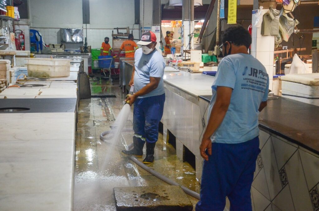 Fechado também para o público externo nesta segunda-feira, o Milton Santos, na zona Sul, recebeu as mesmas atividades de asseio e conservação. “A manutenção destes serviços já foi incorporada à rotina dos comerciantes, pois eles entendem que a iniciativa traz melhoria para o seu local de trabalho”, destaca o supervisor do mercado, Manoel Messias Santos.