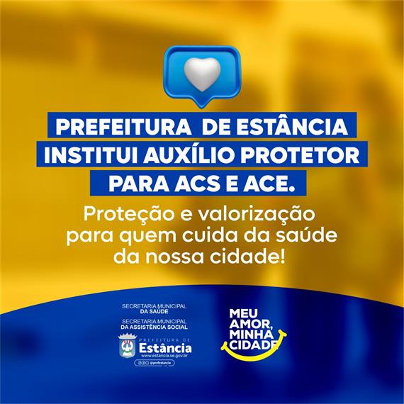 A Prefeitura de Estância, reconhece e valoriza seus servidores. Pensando no bem-estar e proteção de seus trabalhadores, a gestão municipal instituiu através da Lei 2.296, o Auxílio Protetor para aos Agentes Comunitários de Saúde (ACS) e aos Agentes de Combate às Endemias (ACE).