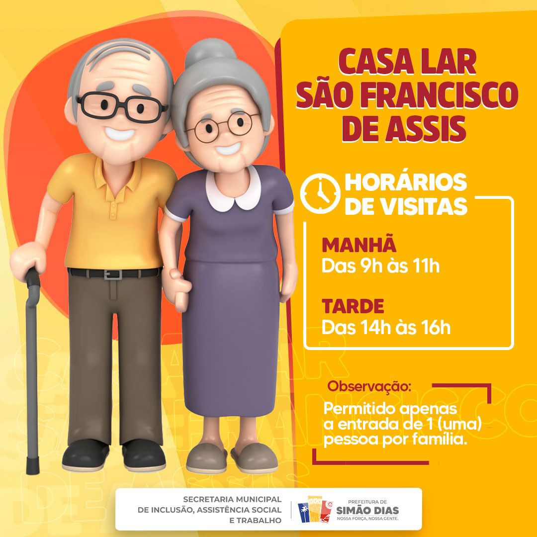 A Prefeitura de Simão Dias, por meio da Secretaria Municipal de Inclusão, Assistência Social e Trabalho, informa acerca do horário de visita na Casa Lar São Francisco de Assis, bem como medidas de proteção contra o Coronavírus.