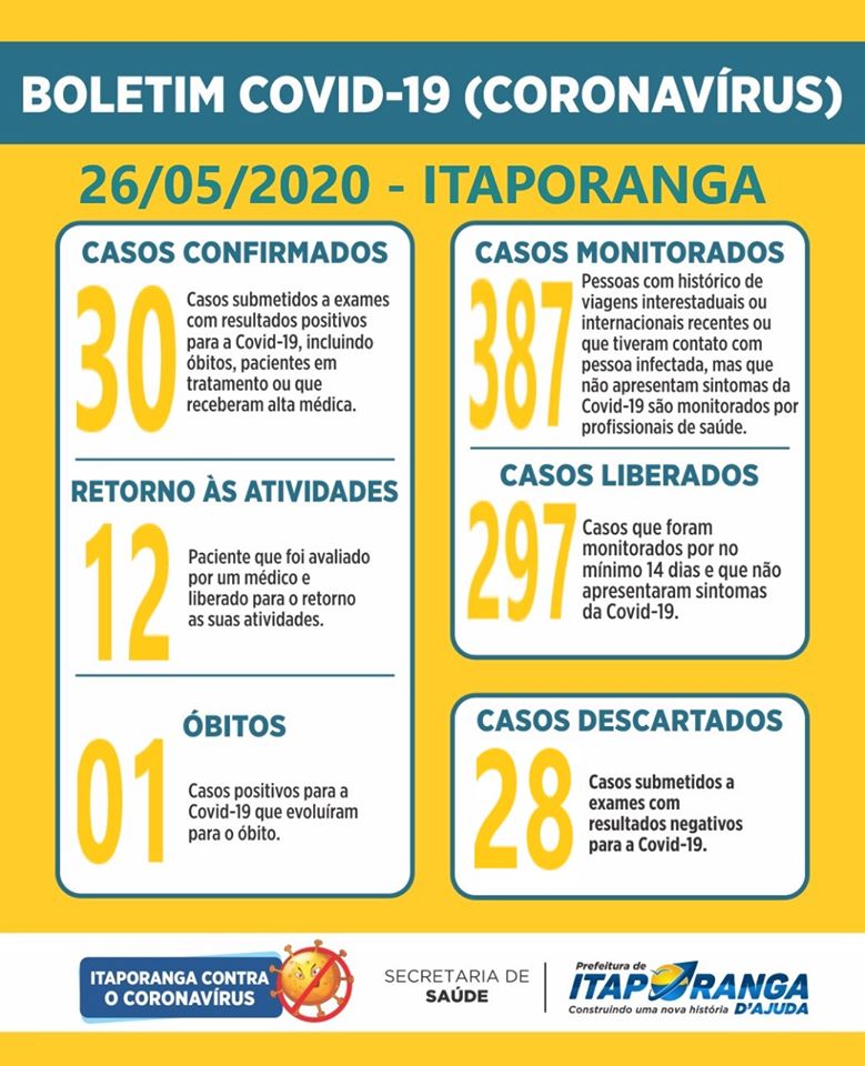 Prefeitura divulga novo boletim do Covid-19 em Itaporanga