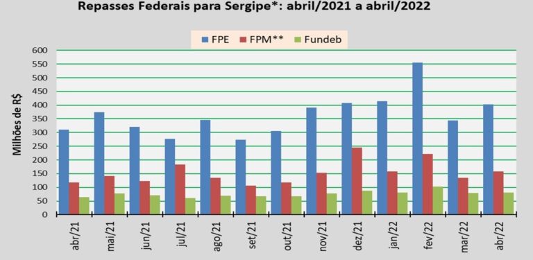 Análise realizada pelo Núcleo de Informações Econômicas da Federação das Indústrias do Estado de Sergipe (FIES), com base nos dados da Secretaria do Tesouro Nacional (STN), indicou que o repasse do Fundo de Participação dos Estados (FPE) para Sergipe, em abril do ano corrente, foi de aproximadamente R$ 402,5 milhões.