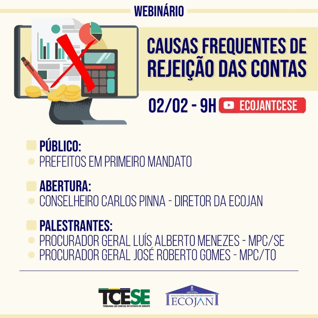 Conforme o conselheiro Carlos Pinna, diretor da Ecojan, a ideia do Webinário “Causas frequentes de rejeição de contas” é que os prefeitos em início de mandato adquiram os conhecimentos necessários para minimizar os riscos do cometimento de erros na utilização dos recursos públicos. “Vamos mostrar os problemas mais comuns detectados pelos Tribunais de Contas”, observa o conselheiro.