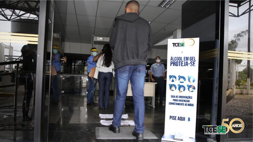 O TCE adotou uma série de medidas como forma de evitar a propagação da Covid-19 na sua sede, a exemplo das constantes desinfecções do prédio, instalação de barreiras de proteção e totem para higienização das mãos, distribuição de máscaras e recipientes com álcool gel, bem como a vacinação dos servidores contra o vírus da gripe.